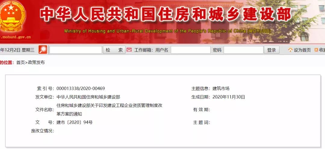 資質大改革!今天住建部網站正式發布新資質改革方案