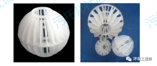 懸浮填料有球形、圓柱形、方粒形等等,大小不一、比重不一、空隙也不一,具有不同水質、不同容器結構、裝不同形狀填料的靈活性、優化性。填料特性具有充氧性能好,掛膜快,掛膜量多, 生物膜更新性能好;使用壽命長,更換簡單等優點,已越來越被廣泛應用。外形如圖 7,8,9,10 所示,規格參數如表 7 所示。