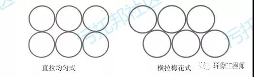 a) 懸掛式填料的組裝需兩端固定,一般宜采用橫拉梅花式和直拉均勻式。