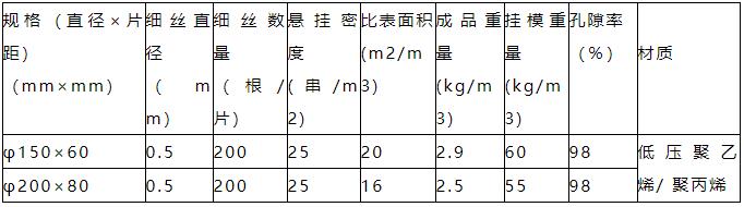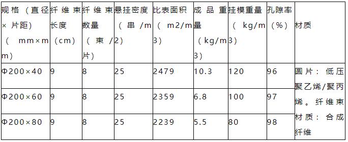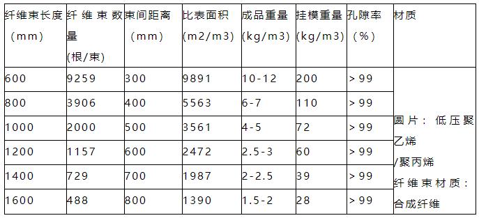1. 軟性填料易結團,且易發生斷絲、中心繩斷裂等情況,其壽命一般為 1 年~2 年。軟性纖維填料,外形如圖 1 所示,規格如表 1 所示。