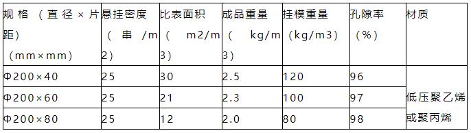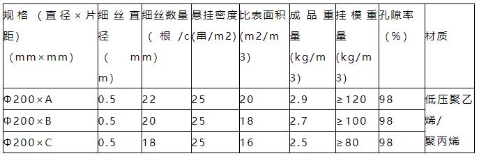 2. 半軟性填料具有較強的氣泡切割性能和再行布水布氣的能力、掛膜脫膜效果較好、不堵塞, 使用壽命較軟性填料長,但其理論比表面積較小且造價偏高。外形如圖 2 所示,規格如表 2 所示。