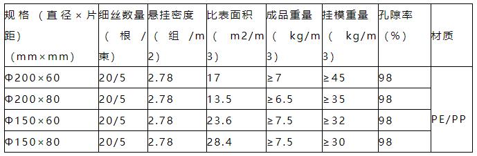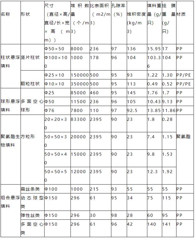 污水處理填料根據進水水質和處理程度確定總生物量,依據填料附著生物量確定填料品種,依據池型、流態和施工安裝條件等選擇填料類別。填料材質應對微生物無毒害、易掛膜,并具有質量輕、強度高、材質抗老化、比表面積大和不宜結垢等性能。