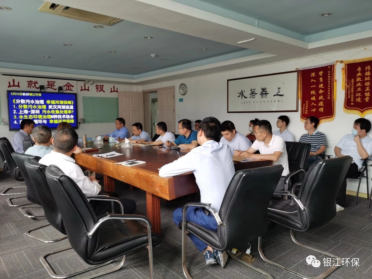 2020年5月23日上午9點,銀江環(huán)保組織技術管理中心及銷售管理中心全員進行了《分散污水治理 幸福河湖保障》主題培訓,榮幸請到上海市水務規(guī)劃設計研究院副總工程師趙敏華給團隊進行培訓,同時邀請中國電建集團華東院生態(tài)環(huán)境院副院長魏俊參加會議,會議主題分為以下5個方面: