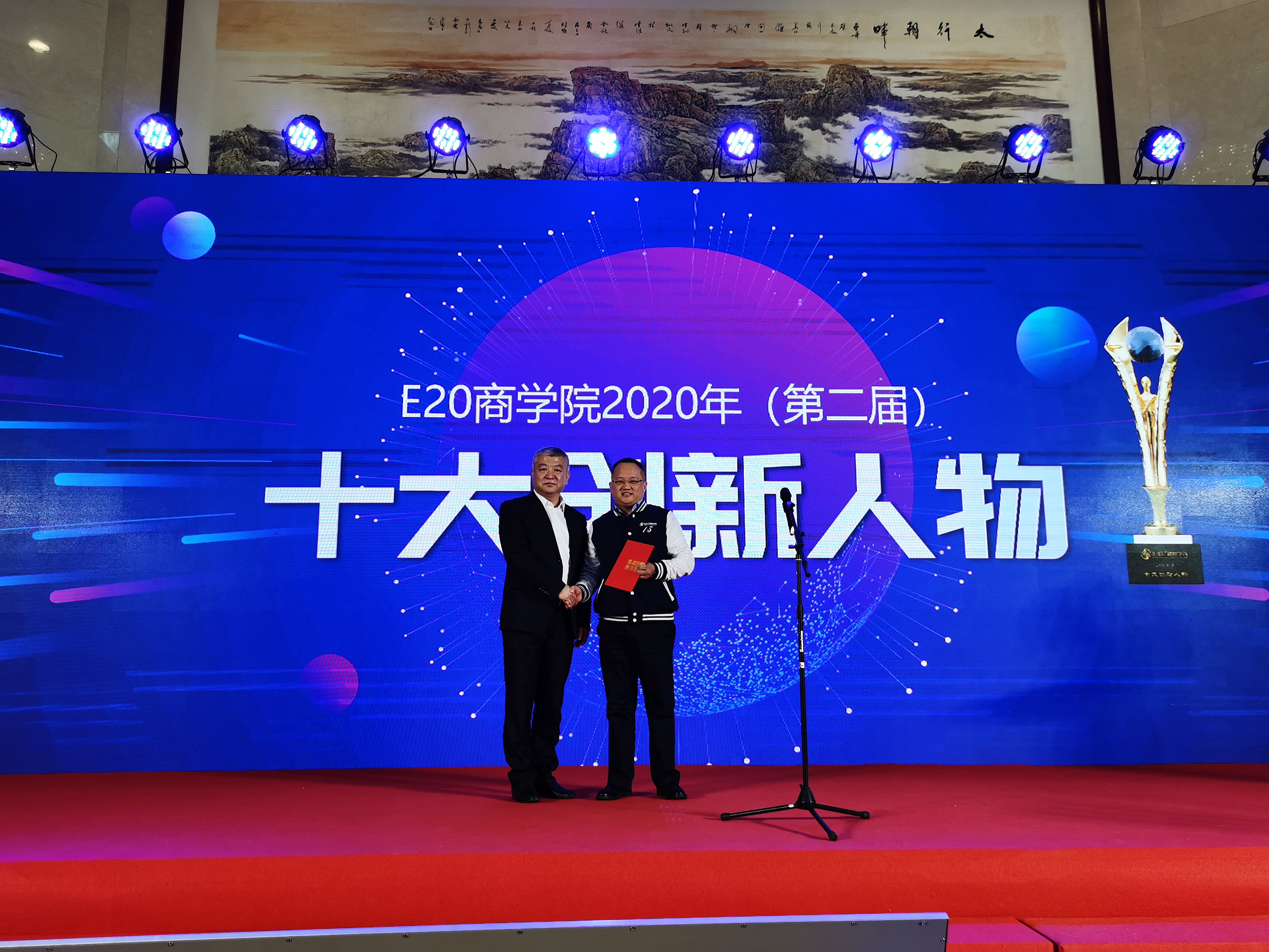 感恩年會上進行了E20環境商學院2020年度(第二屆)創新人物榜單揭曉與頒獎。銀江環保董事長葉偉武憑借“產品創新、模式創新”贏取超高人氣,現場捧回“十大創新人物”、“創新分享獎”、“最佳人氣獎”三大獎項。