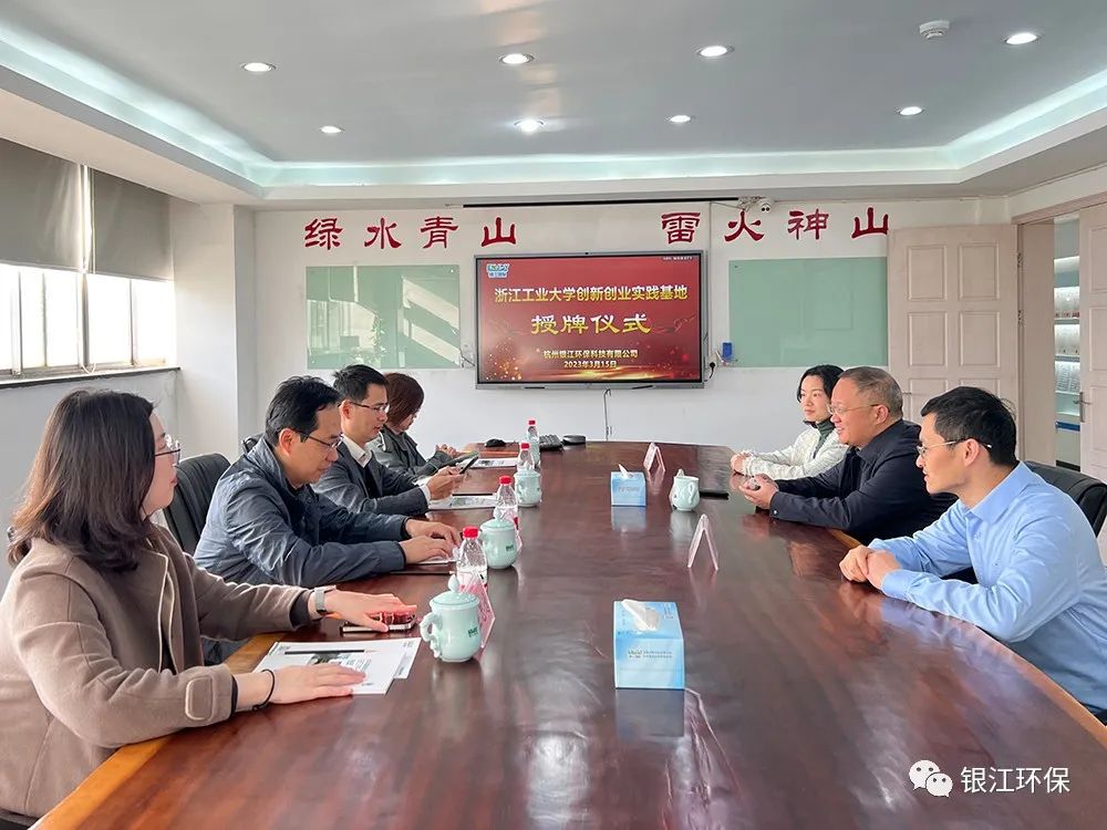 為了加強校企合作,培養市政水處理領域的實戰型人才;也為了帶動地方經濟發展,進一步深化產教融合。2023年3月15日上午,在銀江環保本部,浙江工業大學土木學院與銀江環保舉行了創新創業實踐基地授牌儀式。