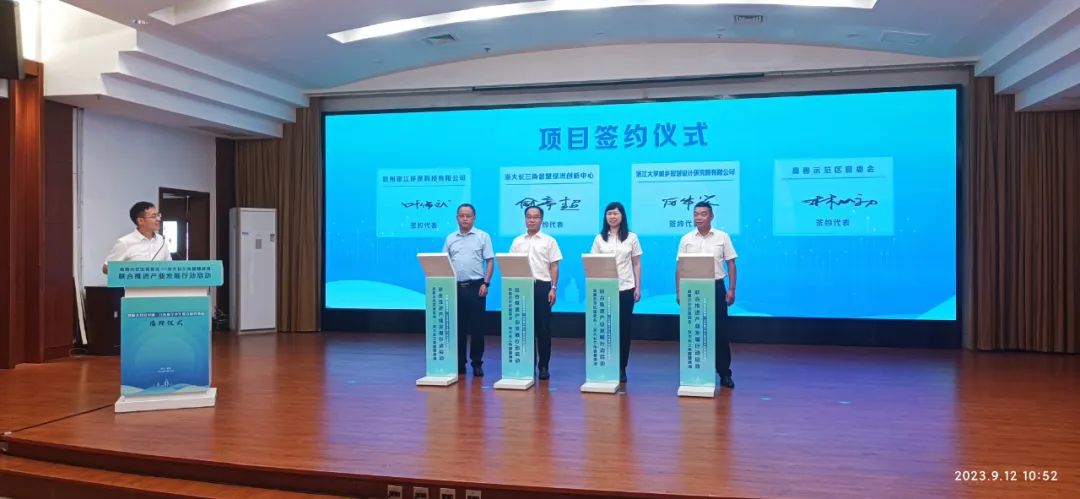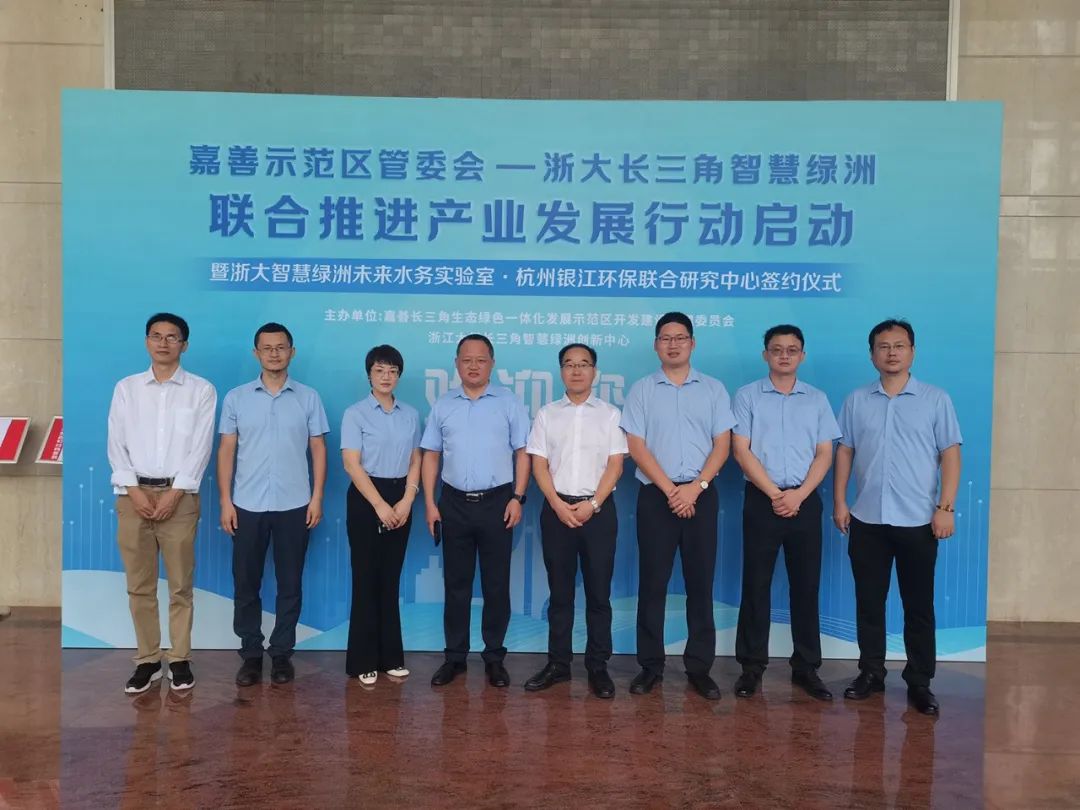 2023年9月12日上午,嘉善示范區(qū)管委會(huì)-浙大長(zhǎng)三角智慧綠洲聯(lián)合推進(jìn)產(chǎn)業(yè)發(fā)展行動(dòng)啟動(dòng)大會(huì)在嘉善縣舉行,啟動(dòng)大會(huì)也開(kāi)展了杭州銀江環(huán)保與浙江大學(xué)長(zhǎng)三角智慧綠洲創(chuàng)新中心未來(lái)水務(wù)實(shí)驗(yàn)室成立聯(lián)合研究中心的簽約儀式。