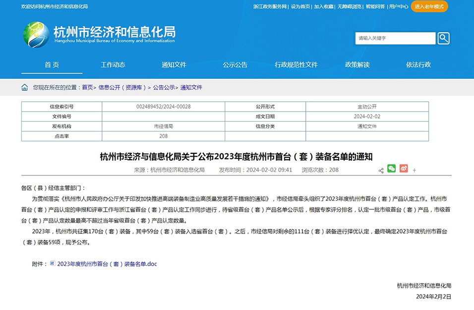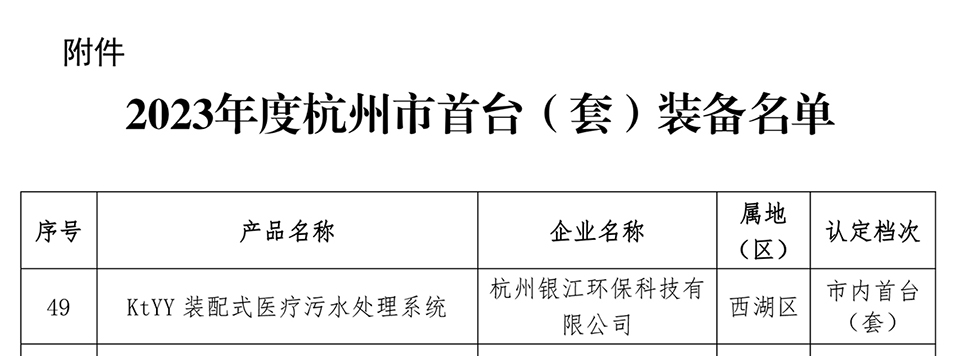 銀江環保水處理系統入選2023年度杭州市首臺(套)裝備發布日期:2024-02-05