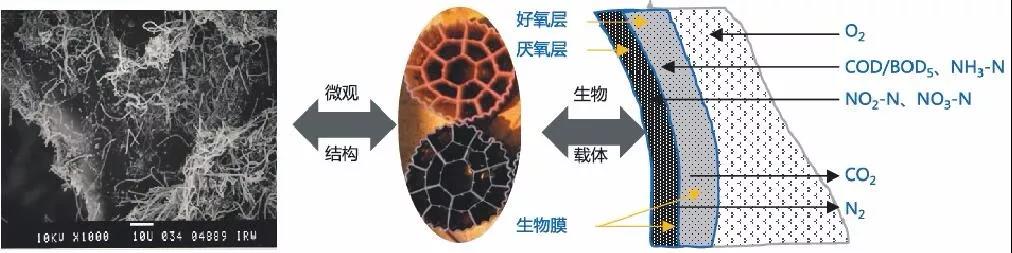 KtIC一體化污水處理設備,采用多級式MBBR & SBBR組合工藝,結合國內外先進的高效溶氧裝置、高效流化傳質系統(tǒng)與均質布水系統(tǒng),通過培育附著在比表面積超過800 m2/m3的BIO-FORM®納米生物載體上的混合兼性菌種,構成BIO-NET生態(tài)系統(tǒng)。其以革蘭氏陽性芽孢桿菌(Bacillussubtilhls)為主、光合細菌 (Photosyntheticbacteria)、硝化、反硝化細菌等混合菌劑為輔的高效菌體,高效降解污/廢水中的總氮、 COD及氨氮等污染物,具有高效、耐沖擊、施工簡便、占地少等技術優(yōu)勢。